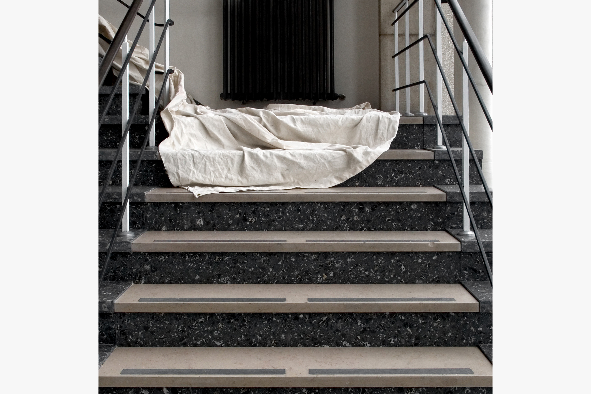 At first sight the everyday places and events seem plain and meaningless. The compositions and limited presence of color result in a certain degree of realism. Furthermore, dramatic light and shadow effects, conspicuous digital processing and a lack of depth of field are avoided. All of this leads to a clean image of almost total insignificance. But below this anonymous surface it smoulders.
